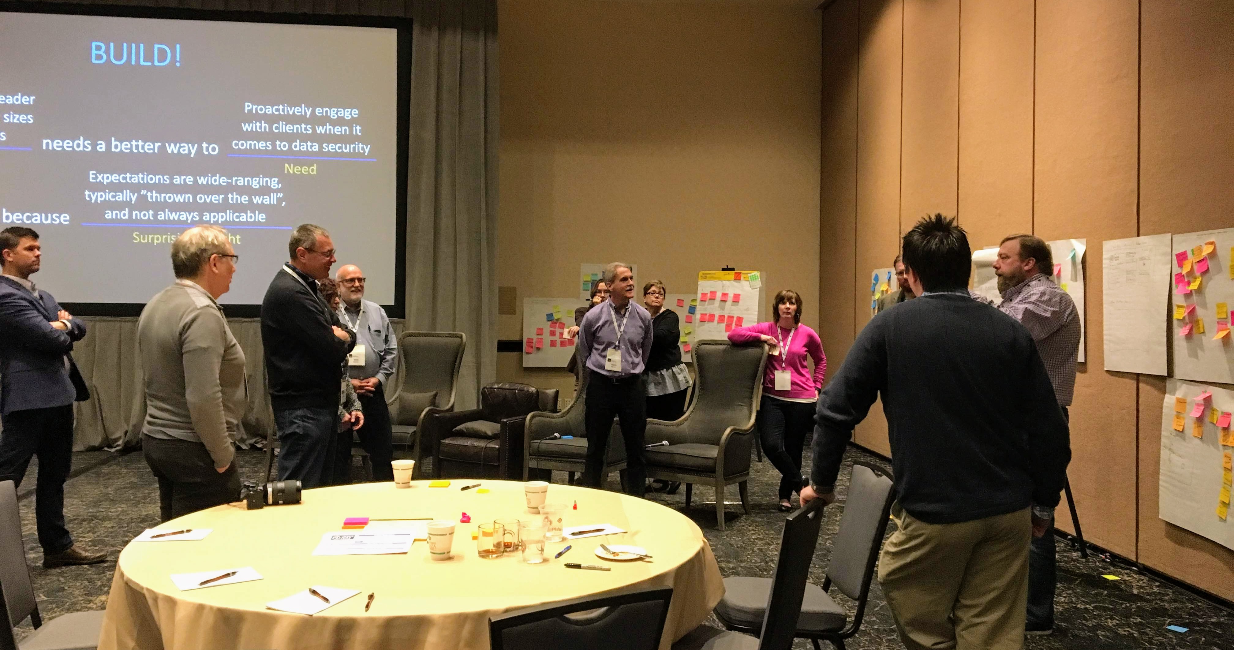 After the keynotes and panels came design thinking sessions led by Andy Peterson, cofounder of the consulting firm Design Build Legal. Peterson’s programming included both training in design thinking principles and small group exercises to put that training to work. The small-group breakouts were highlights of the conference, bringing together participants from diverse backgrounds to collaborate on ideation and prototyping.