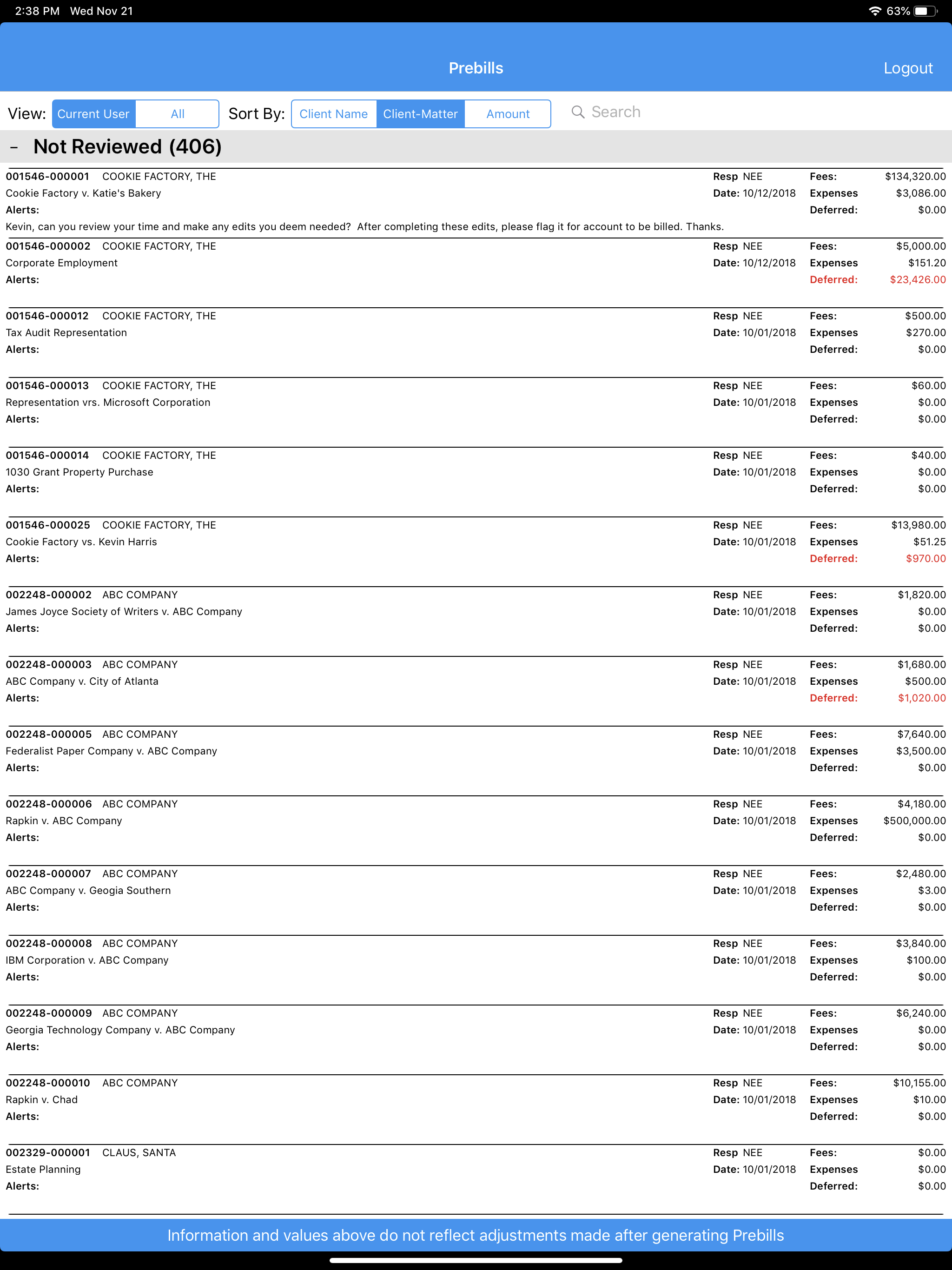 ePrebill Manager is also available in iOrion 5, so attorneys can review prebills while away from their desks.