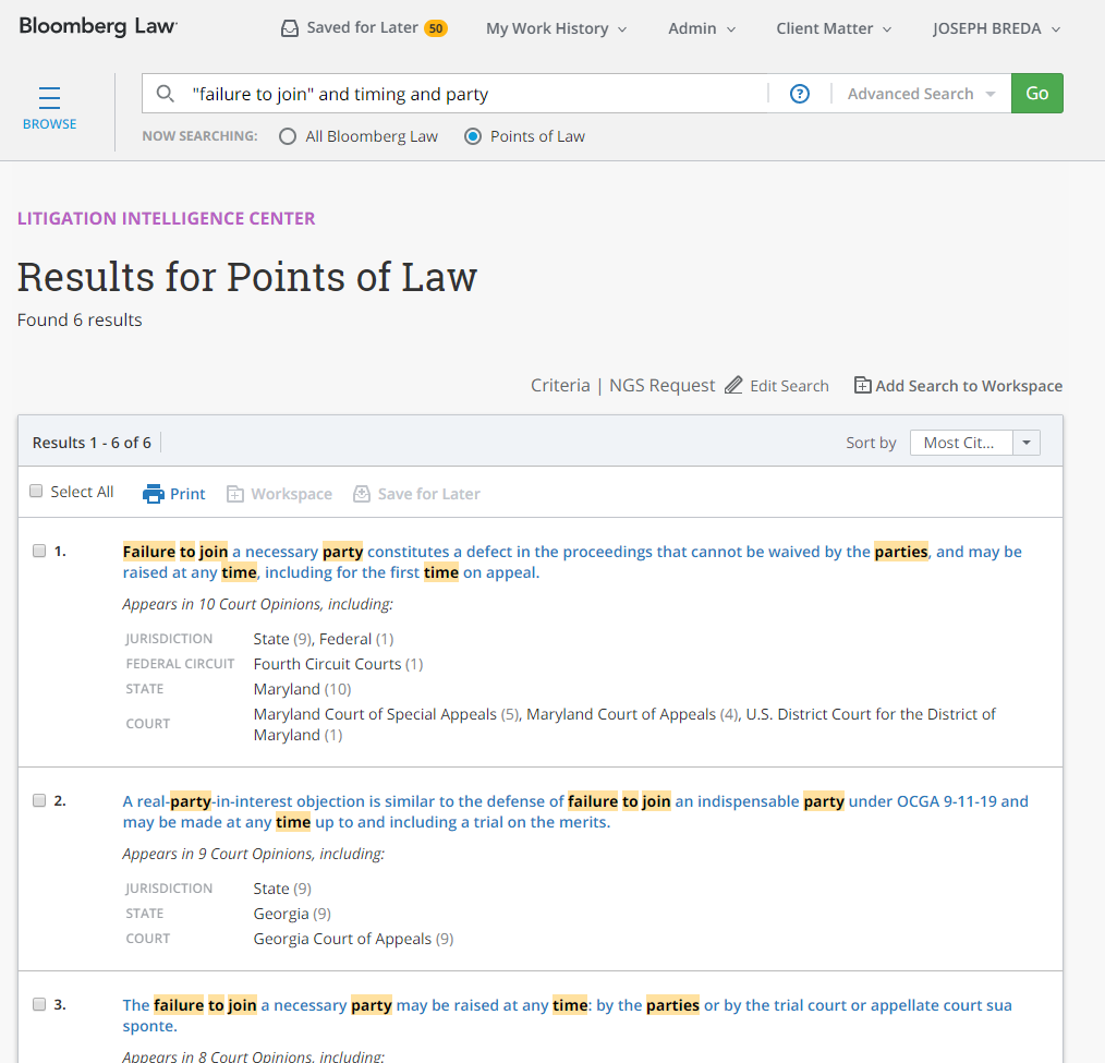 - Integration with Points of Law, a Bloomberg Law feature that lets users quickly find key legal principles.