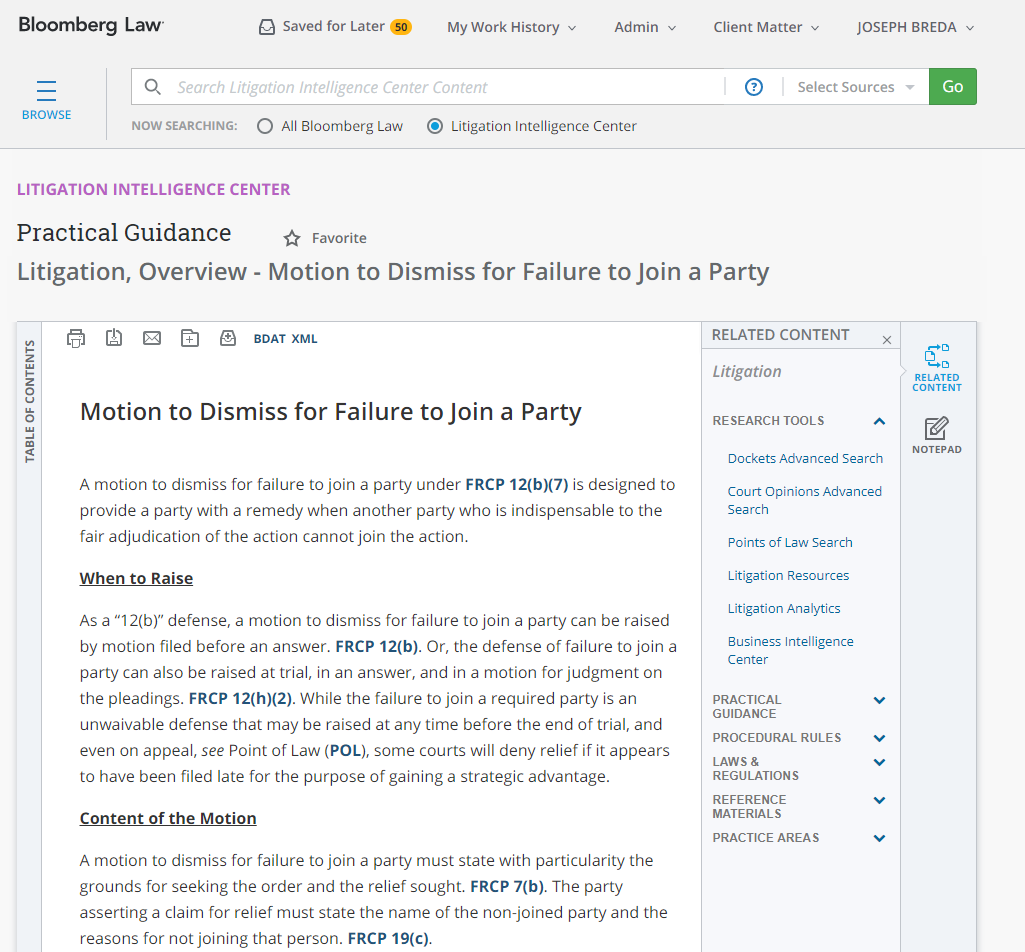 Today, Bloomberg Law is rolling out an expansion of those suites with new Practical Guidance resources focused on litigation. As it is launching today, the new Litigation Practical Guidance focuses on responsive pleadings and motions, with overviews, checklists, sample forms and sample filings related to responding to a complaint; amending, joining and countersuing; and motions such as to dismiss or for summary judgment.