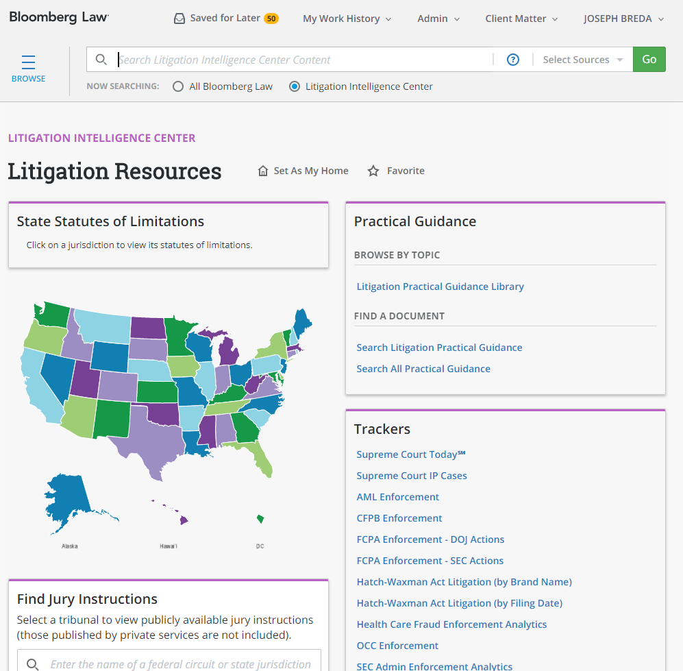 This includes a guide to state statutes of limitations that can be both browsed and searched. All of this litigation content is also integrated with other litigation-related tools on Bloomberg Law, such as Points of Law, Smart Code, and the Dockets database.
